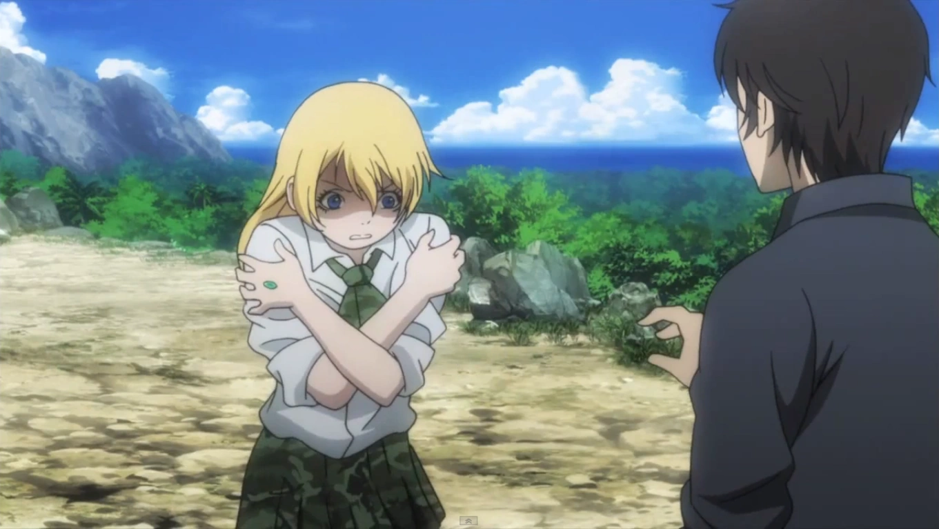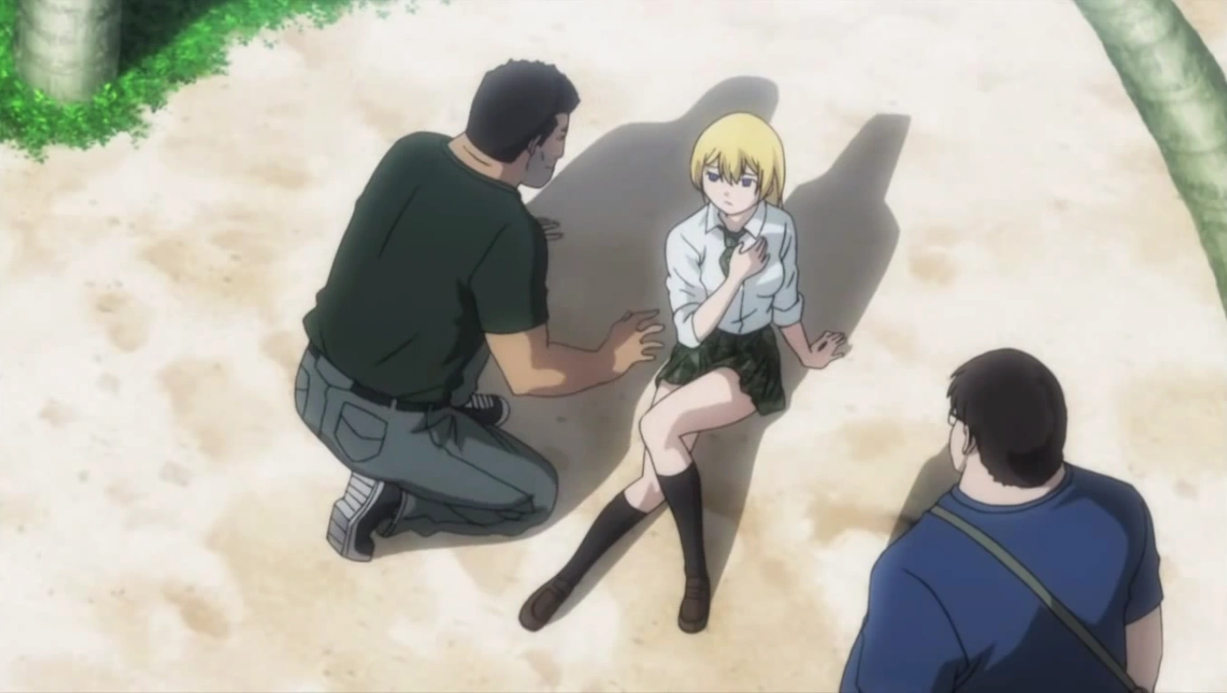 Ya de día, la tensión comienza cuando Ryōta y Taira sospechan de Himiko ya que al encontrarla, llevaba varios tipos de BIMs e alimentos. Ryōta comienza con una serie de preguntas, sin embargo son interrumpidos cuando un radar alcanza a Himiko. Mientras Ryōta distrae al ejecutor, Himiko se queda con Taira. Cuando Ryota regreso, Himiko decide partir del lugar ya que teme que lo hayan seguido, en esto, Miyamoto aparece y amenaza a todos con un cuchillo. La tensión sube cuando Taira decide atacar a Miyamoto sin éxito, lo mismo pasa con Ryōta quien es lanzado por el acantilado. Por otra parte, Himiko es secuestrada por los dos hombres.