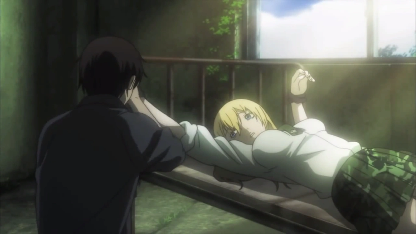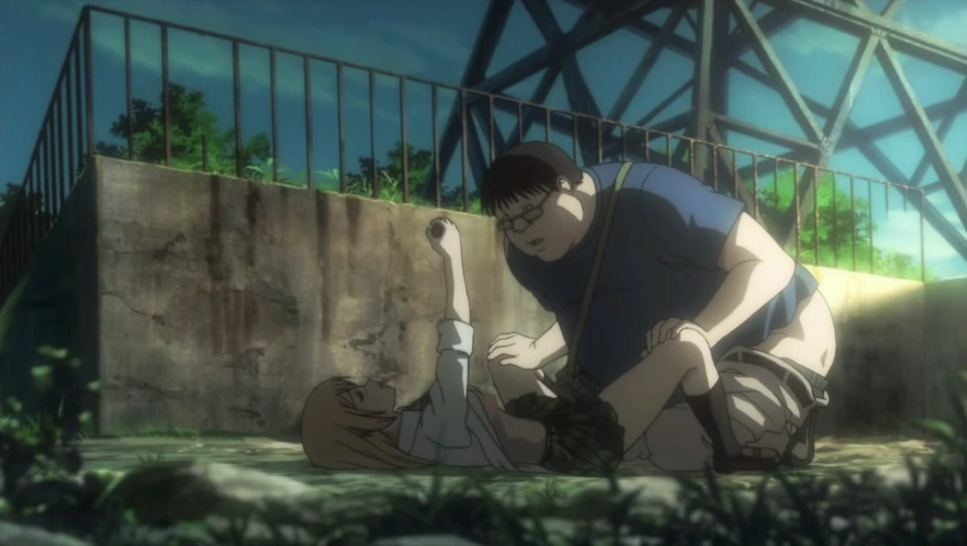 Himiko es llevada hacia un edificio donde es atada a una cama, estando allí menciona que no se resistirá en que la asesine con tal de no perder su pureza. Masashi responde que eso no le interesa, y que existen otro métodos como la "tortura", en esto, los dos hombres detectan que alguien uso el radar. Himiko responde la señal y es golpeada.