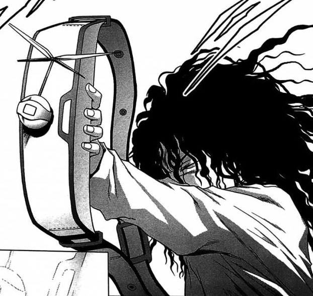 On the night of the third day, Shiki awakens Himiko from her slumber with a flashlight. Terrified by Shiki's sudden appearance, Himiko screams, prompting Shiki to flee and awakening Ryōta. Bewildered, Ryōta and Himiko then investigate. During their investigation, Shiki lures Ryōta into a well-lit room full of supplies in order to catch him off-guard. Shiki then attacks Ryōta from behind with a sickle, causing him to crash into a nearby table. She then swings her sickle at Ryōta, which Ryōta dodges, causing her sickle to become stuck in the table. Ryōta then kicks her in the stomach, rendering her unconscious. [4]